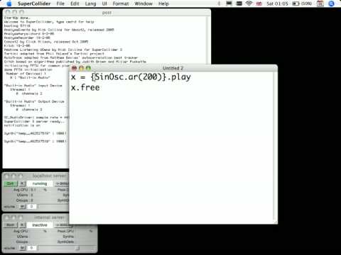 You might also feel a bit more comfortable with your Supercollider setup after watching this 60 second introduction (just to see how the windows are supposed to look). As an aside, I only had 1 mini-window for the localhost server, even though the video shows 2.